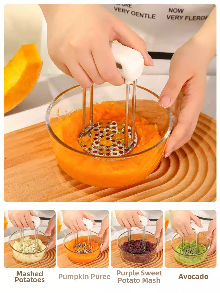 ,baby food supplement, stainless steel baby masher, potato mashing, avocado mashing tool